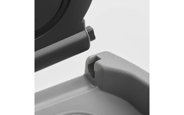 - Integrierte Führungselemente gewährleisten eine einfache Fixierung im Fahrzeug mithilfe von Riemen oder Sicherheitsgurten