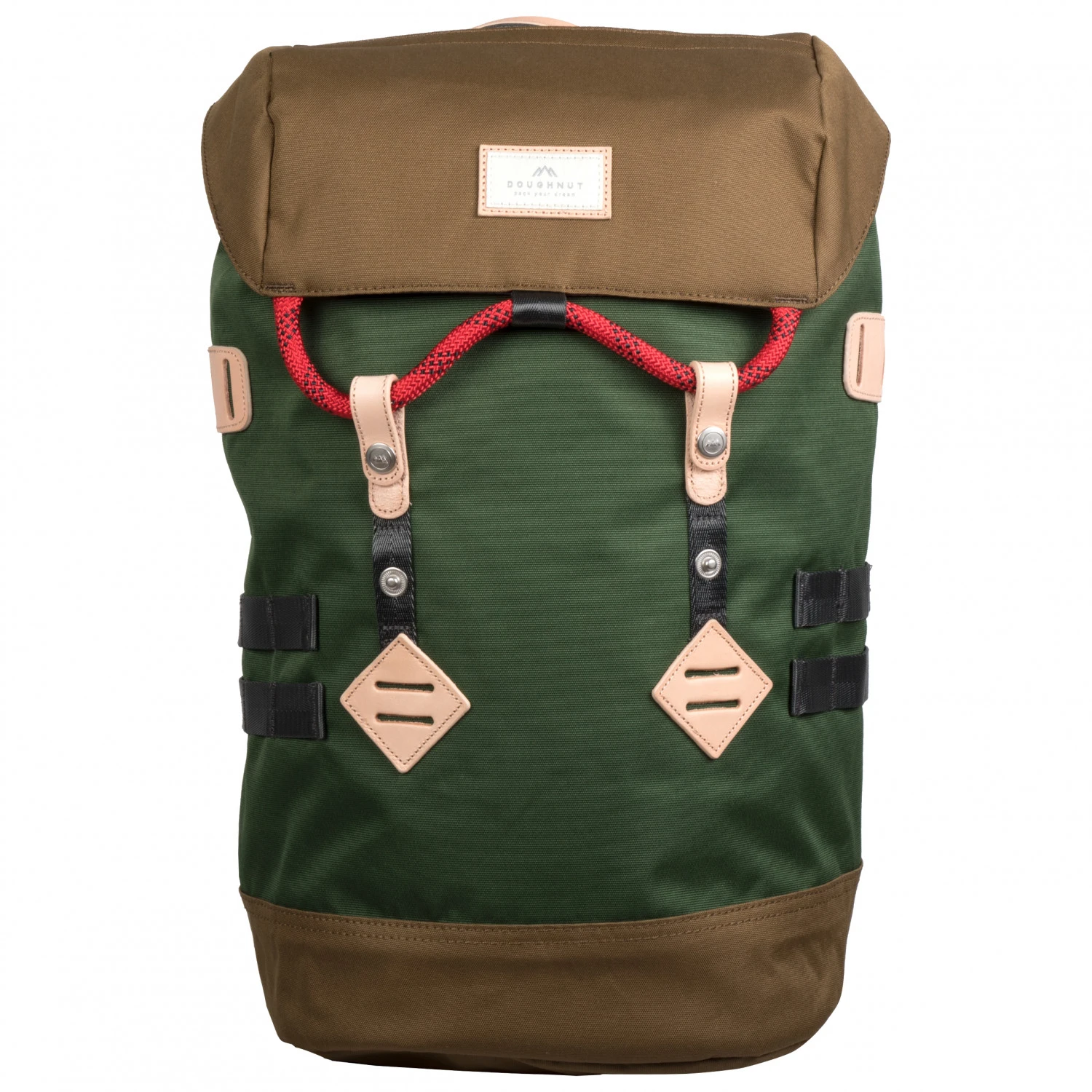 Mit einem Kombination aus Leder-Applikationen und stabilem Seil wird der Colorado 19 Toploader verschlossen. Im Innenraum bietet ein extra Laptopfach Platz für ein 15 Zoll großes Notebook. Zusätzlich verfügt der Doughnut Rucksack über ein Fach im Deckel und ein spezielles Fach für Trinkflaschen.