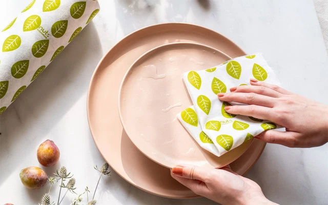 Unsere Bambuspapiertuch-Rolle besteht aus 100% Bambus-Viskose und ist 100% plastikfrei und deshalb kompostierbar.
